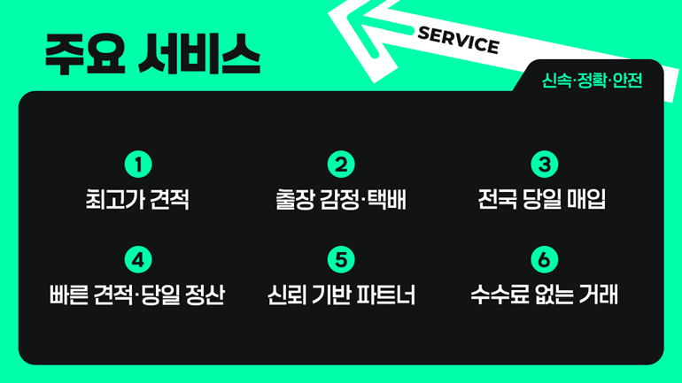 즉시매입은 현장에서 바로 현금 지급이 이루어지는 방식이다. 시간적 여유가 없거나 확실한 현금화를 원하는 경우에 적합하다. 매입가는 다른 방식 대비 낮을 수 있지만 거래의 확실성과 신속성이 보장된다.